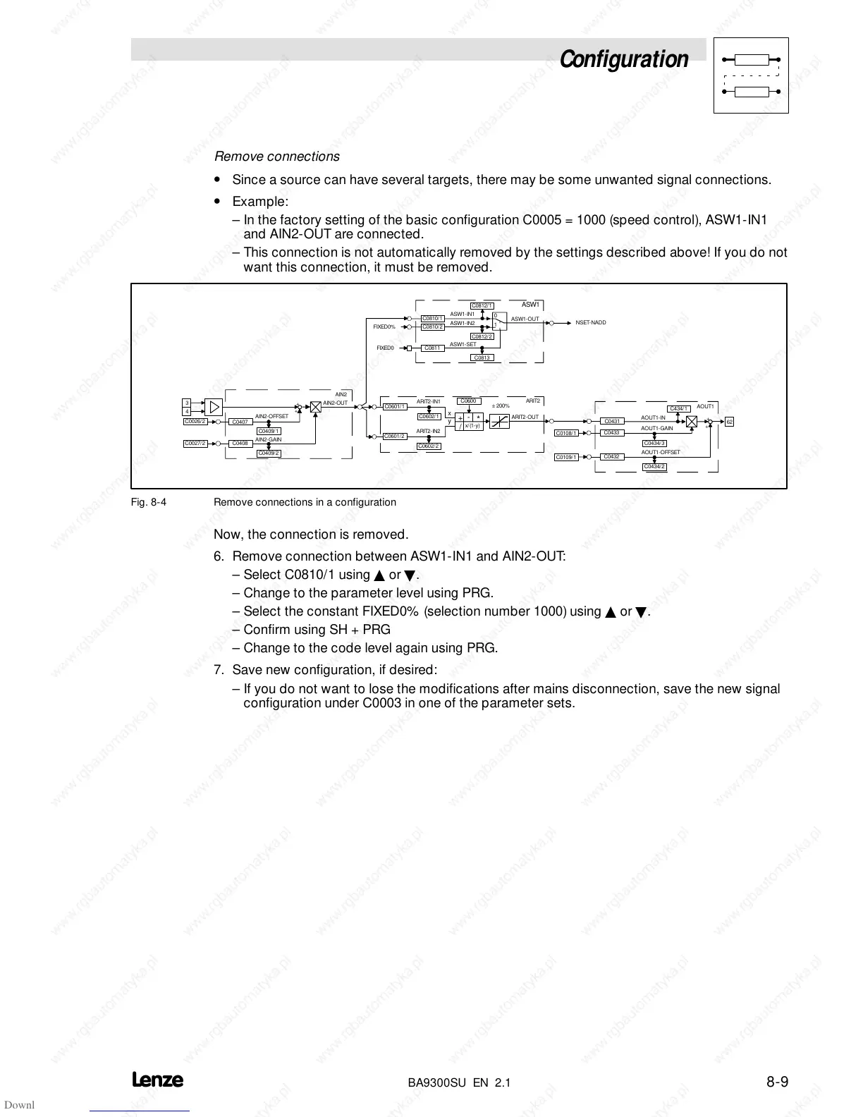 – In the factory setting of the basic configuration C0005 = 1000 (speed control), ASW1-IN1