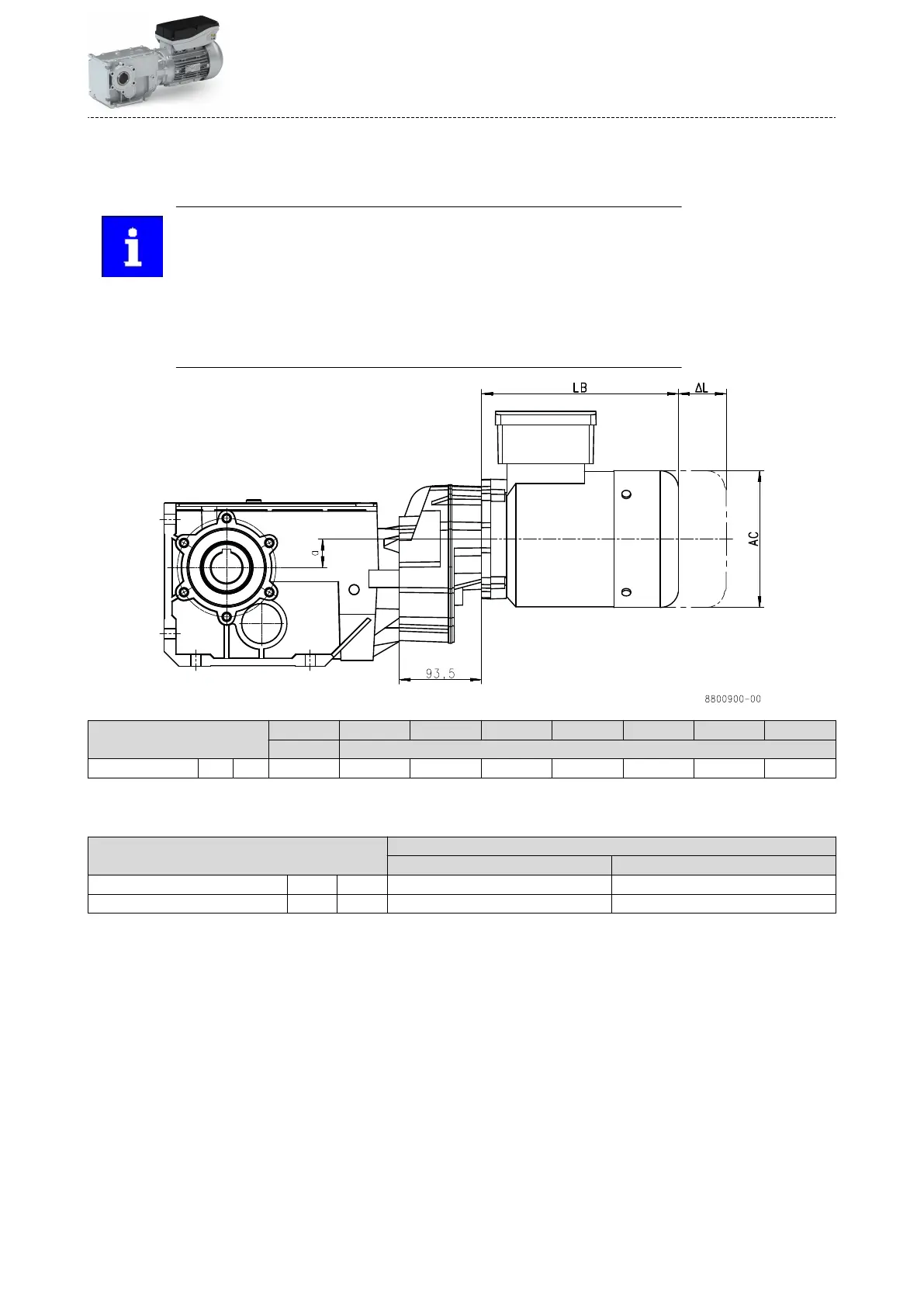 Note the changed center distance "a" between the gearbox sha and the motor