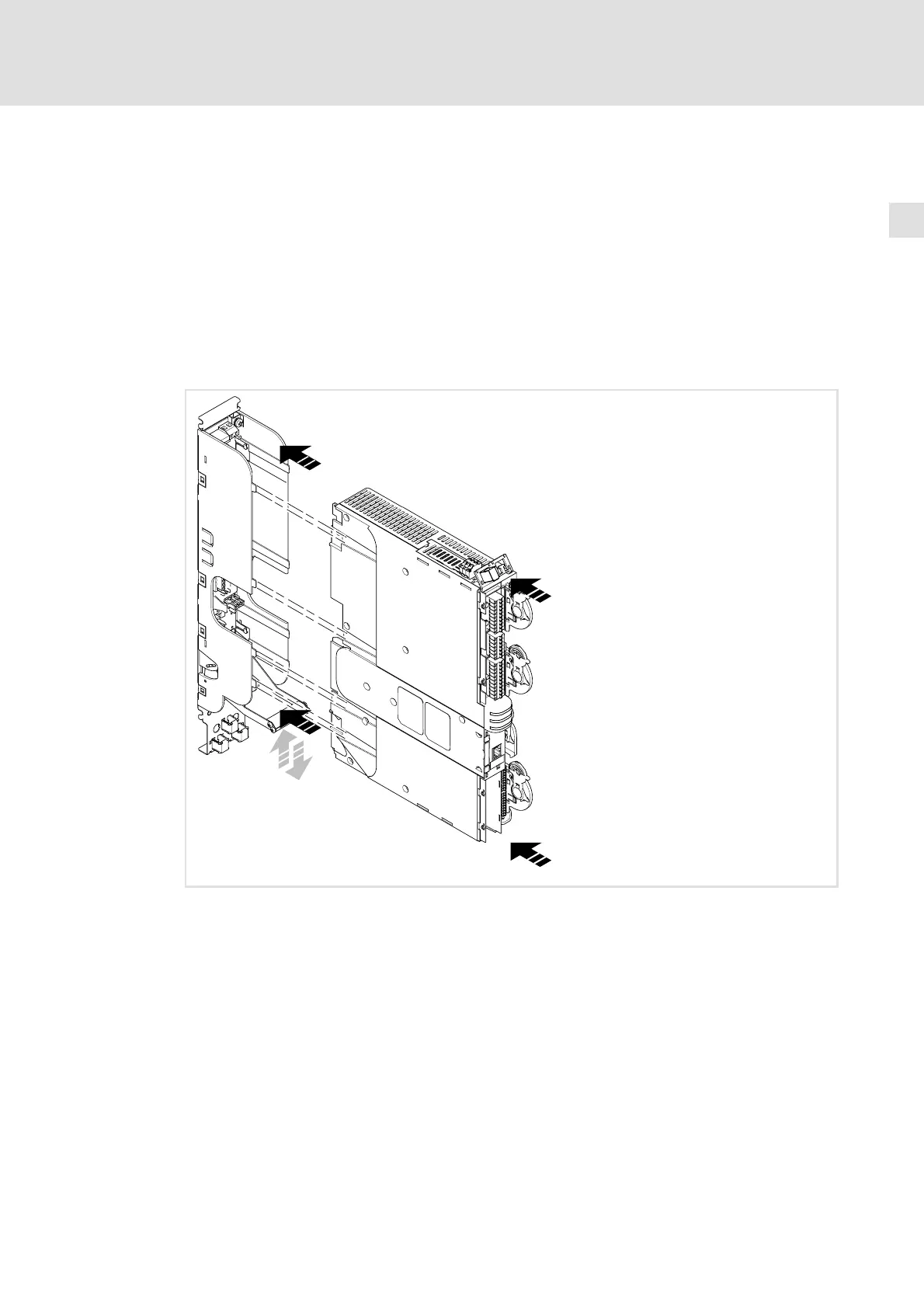 2. Press the device into the installation backplane until it audibly snaps into place. The