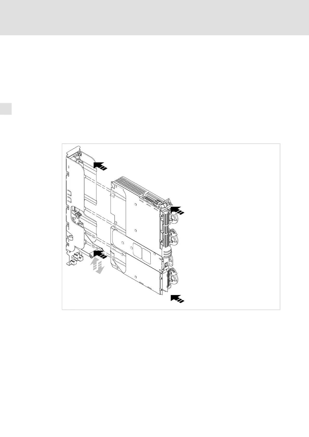 2. Presionar la brida de enclavamiento hacia abajo. De esta forma el equipo queda libre