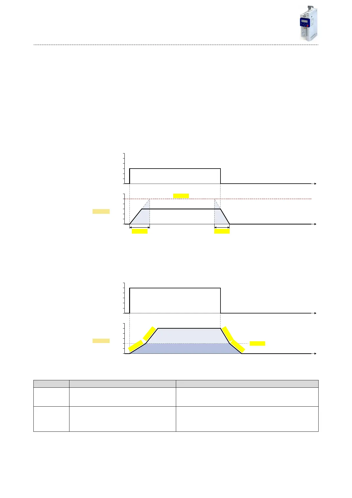 frequency setpoint, two dierent ramps can be parameterised. Change-over to ramp 2 can be
