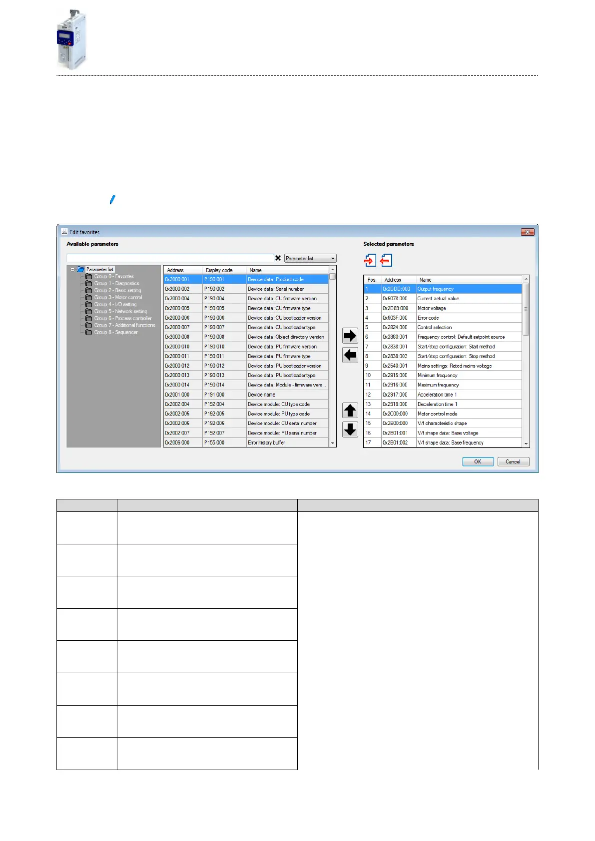 The easiest way to process the selecon of the favorites is via the parameterisaon dialog in