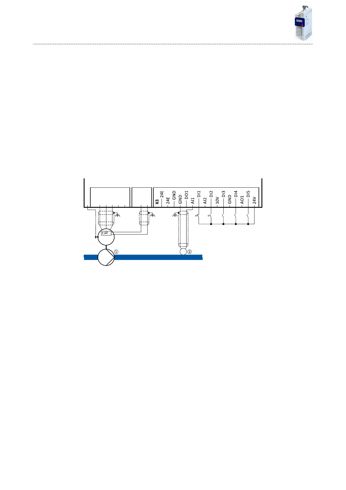The following sample connecon plan shows the control of a pump