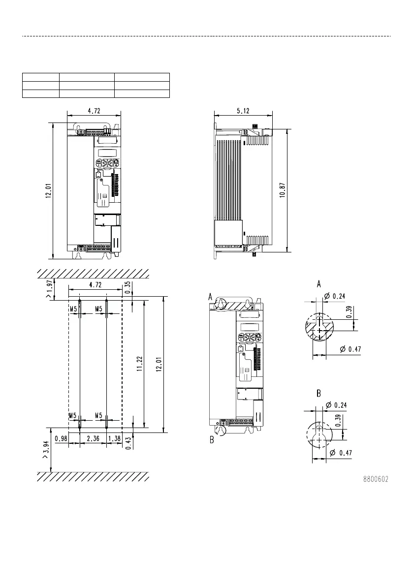 The dimensions in inch apply to: