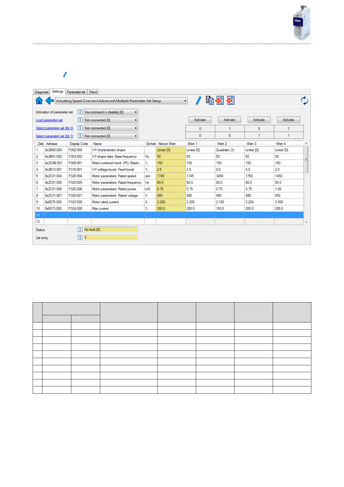 mulplicaon of the actual seng value by the factor of the respecve parameter. In the ,