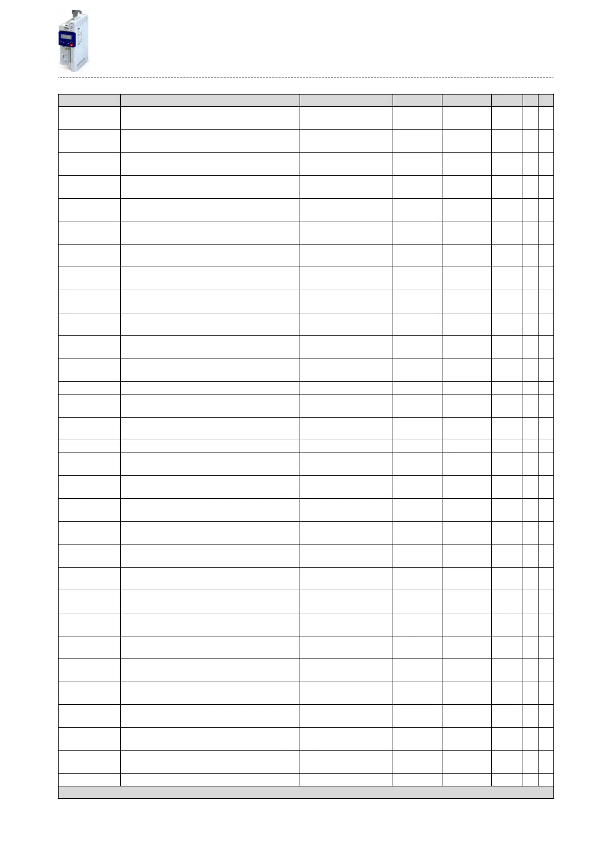 Acve CANopen sengs: Acve baud rate - (Read only) CANopen U8 1 - -