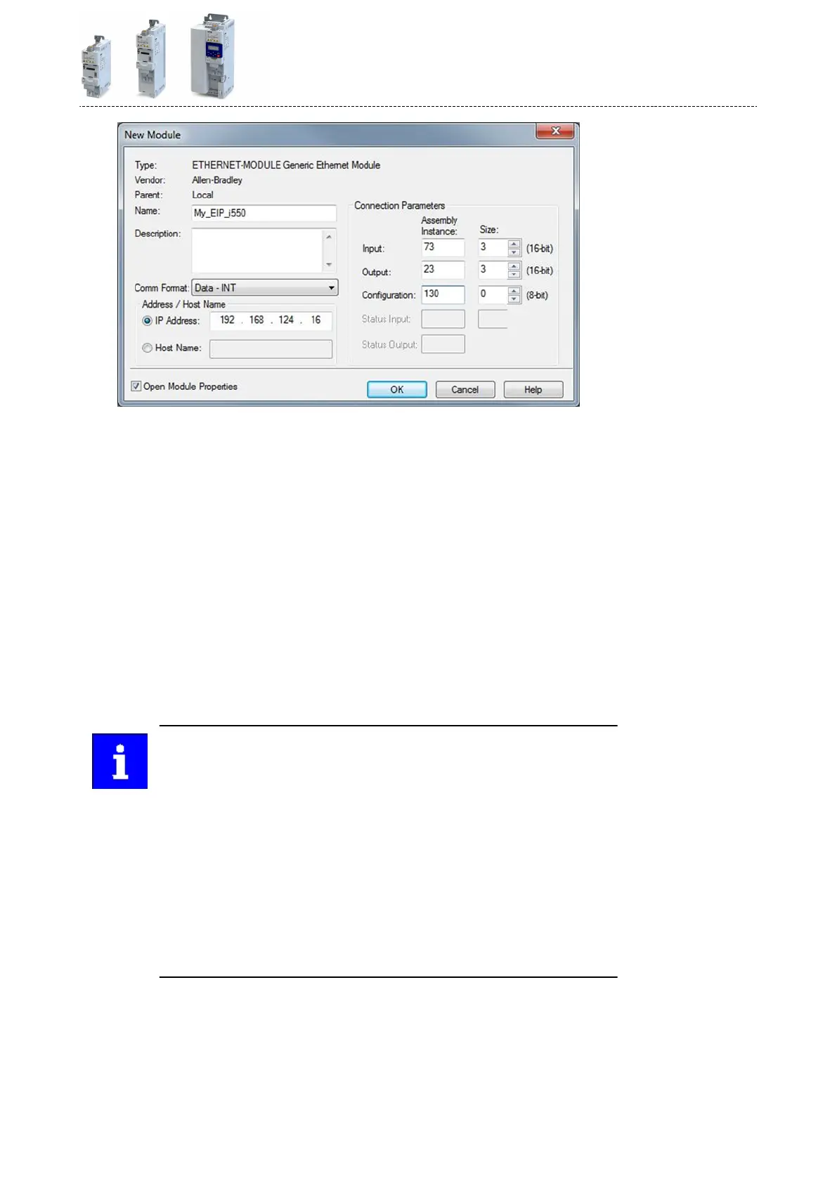 c) Select "Data-INT" for the "Comm Format" since the data in the assembly objects 73
