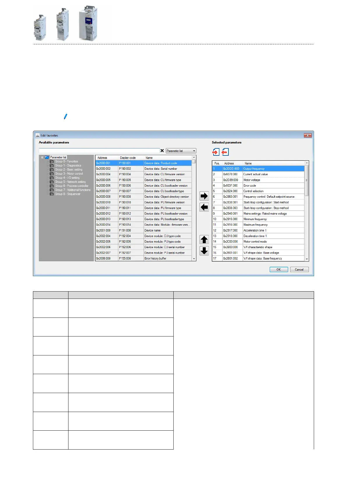 The easiest way to process the selecon of the favorites is via the parameterisaon dialog in