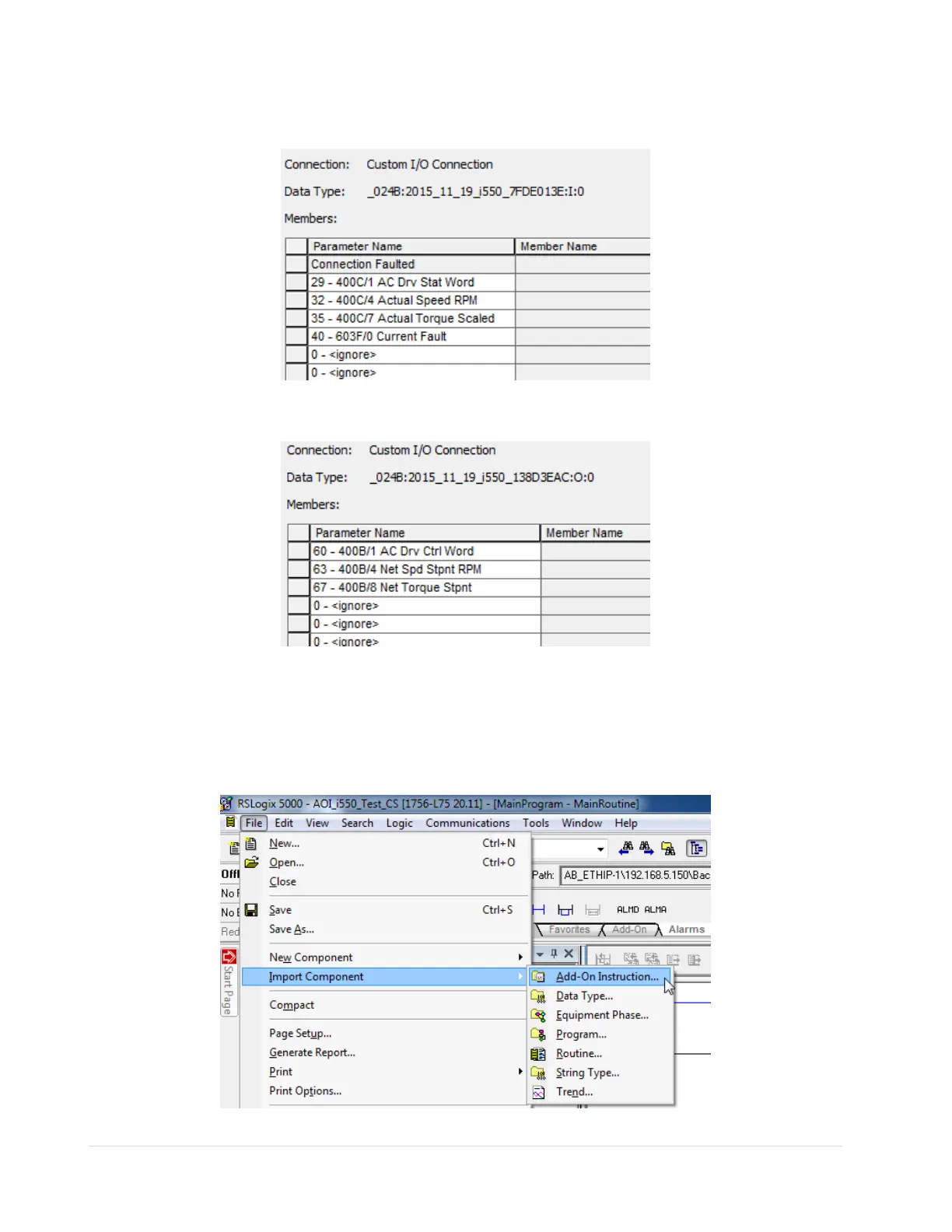 1) Insert i550_ActuatorSpeed Add-On Instruction (AOI) into project from file. See Figures 15,