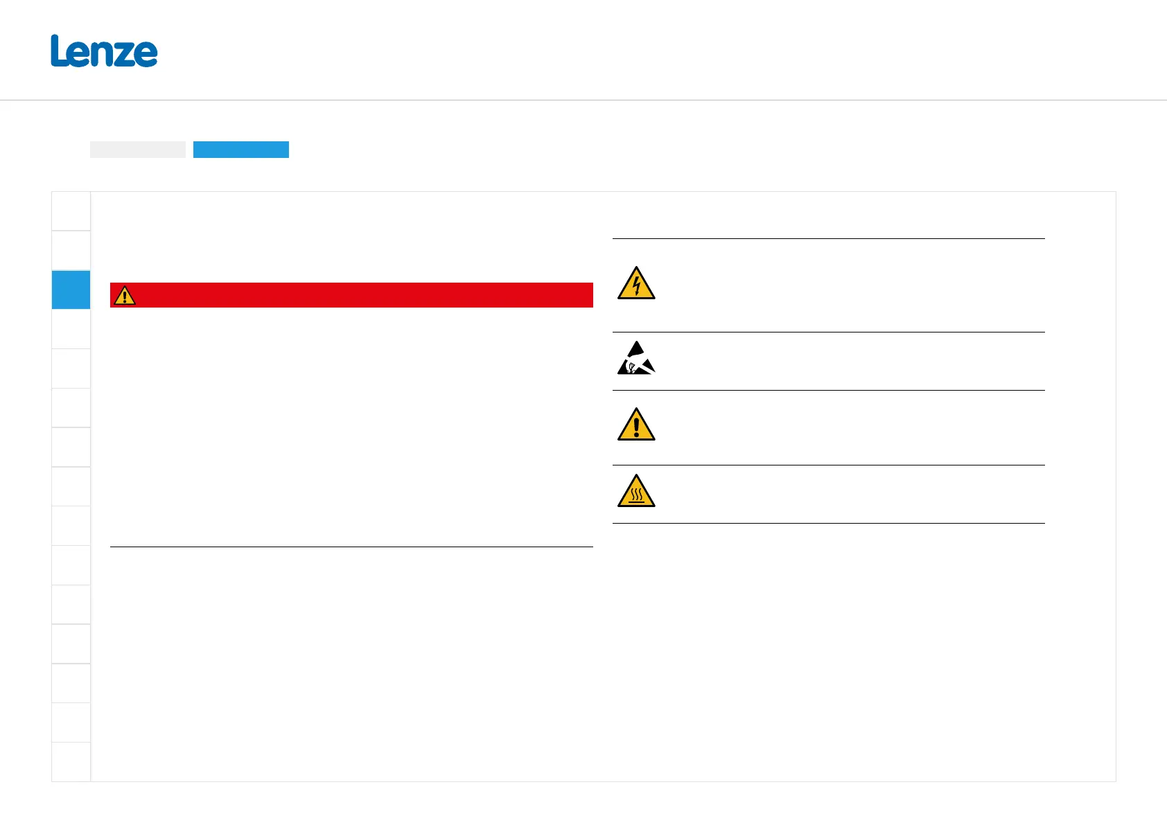 • Implement the measures required by EN IEC 61800-5-1 or EN IEC 60204-1, i.e. xed