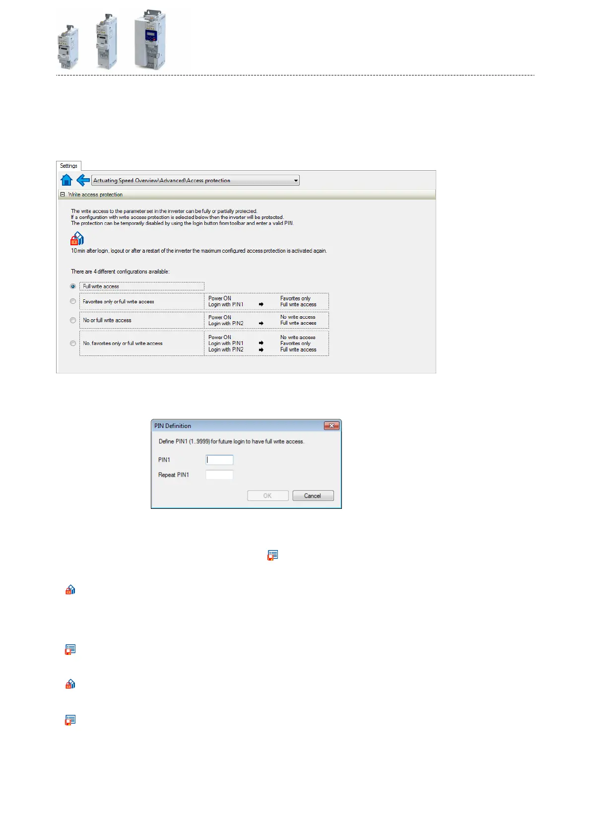 The write access protecon is acvated by specifying PIN1 and/or PIN2 (depending on the