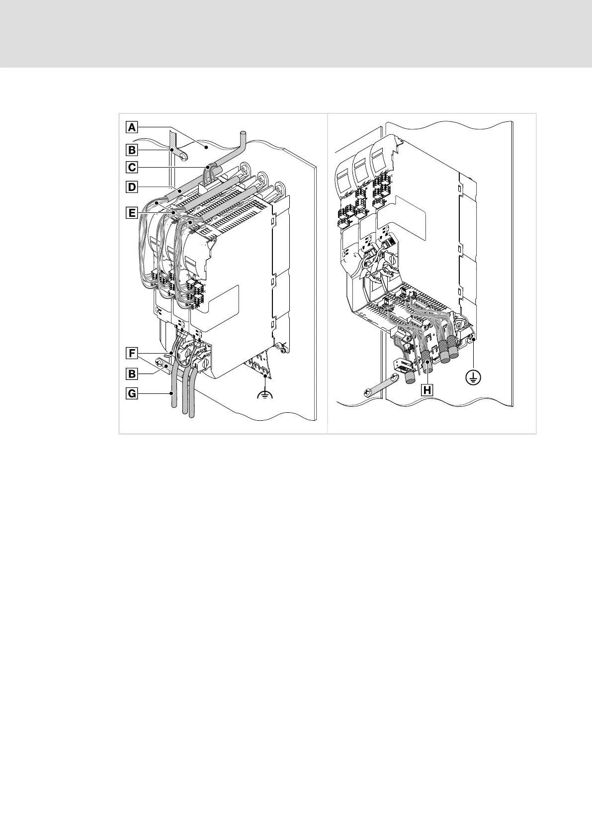 Shielded cables of the motor, motor holding brake and brake resistor connections