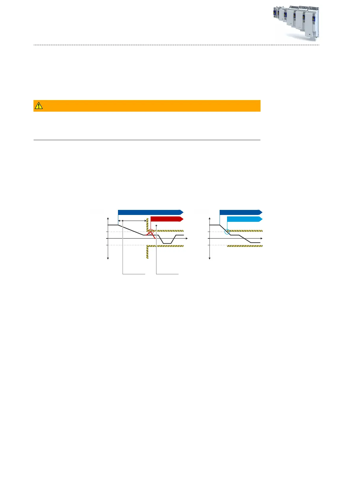 If the speed is exceeded in the monitored state, an error message is triggered. For the SLS
