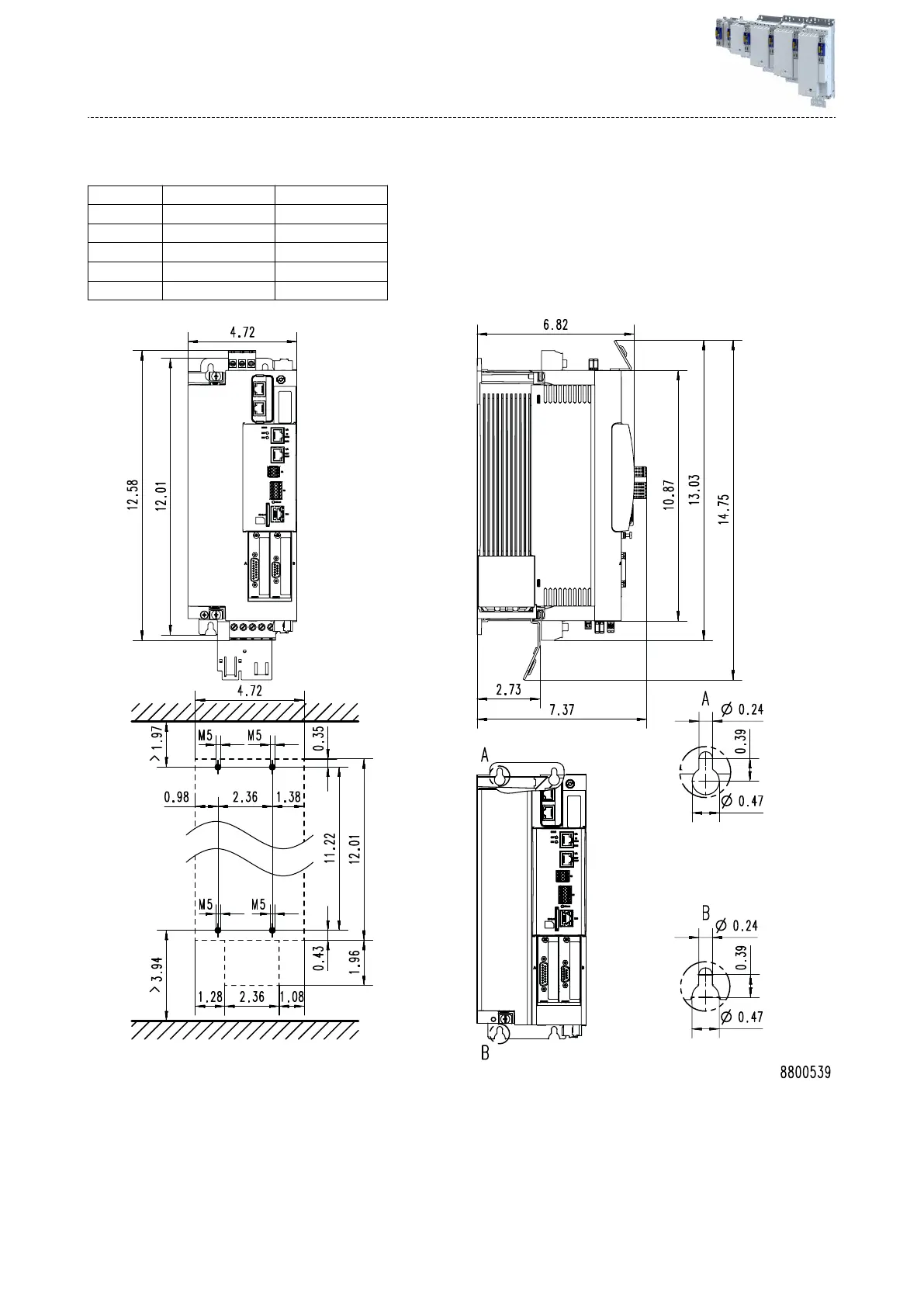 The dimensions in inch apply to: