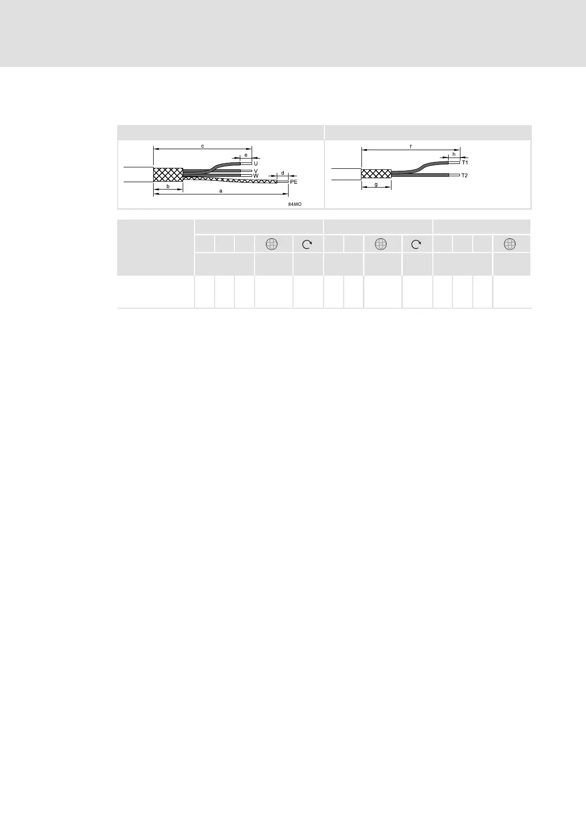 1. Strip motor cable and cable for motor temperature monitoring according to