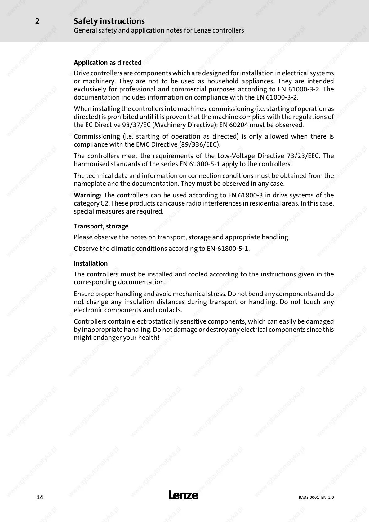 harmonised standards of the series EN 61800-5-1 apply to the controllers.