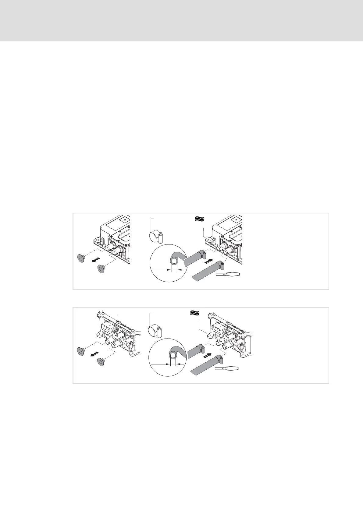 ƒ Remove the protective caps from the adaptors (delivery status).