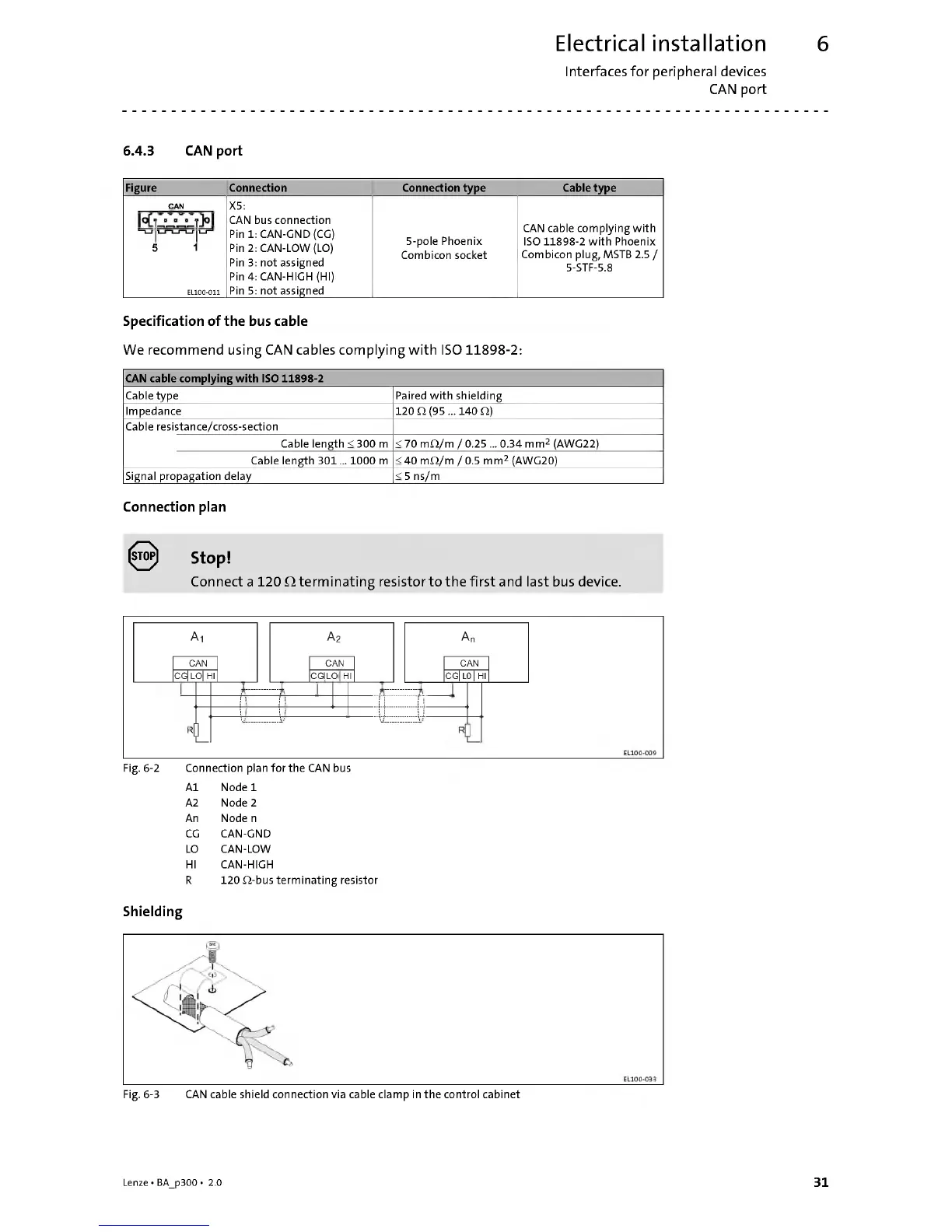Fig. 6-3 CAN cable shield connection via cable clamp in the control cabinet