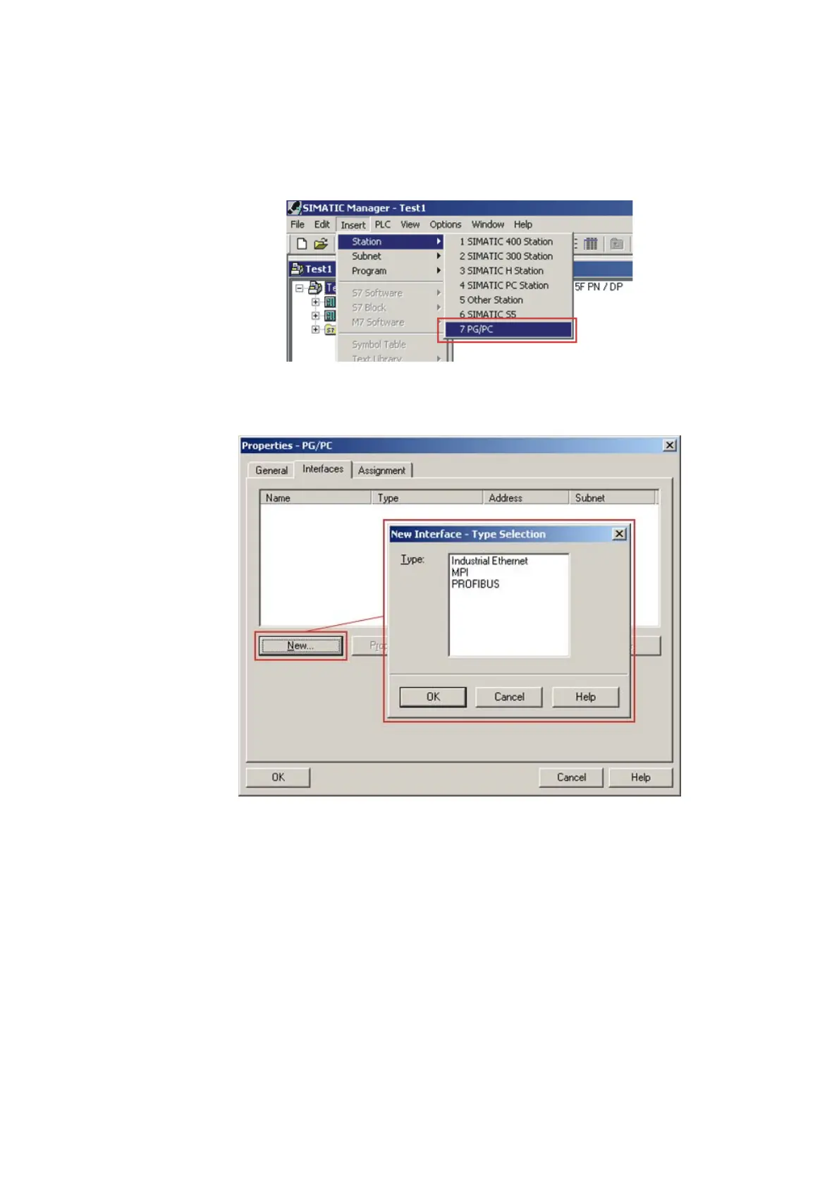 5. Use the menu command Insert Station 7PG/PC to integrate a PG/PC station into the
