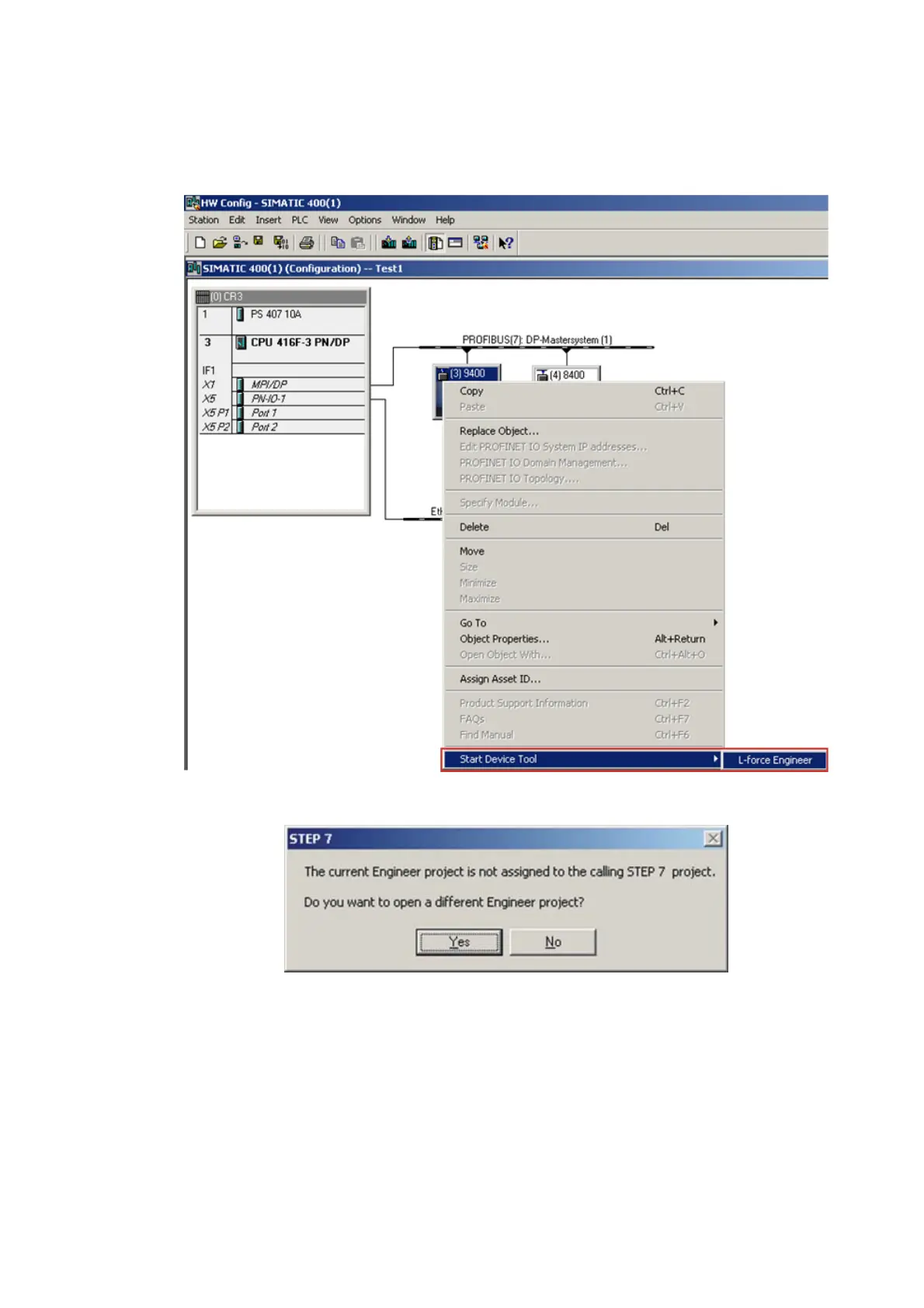 • The message says that the »Engineer« project is not set to a TCI communication path and
