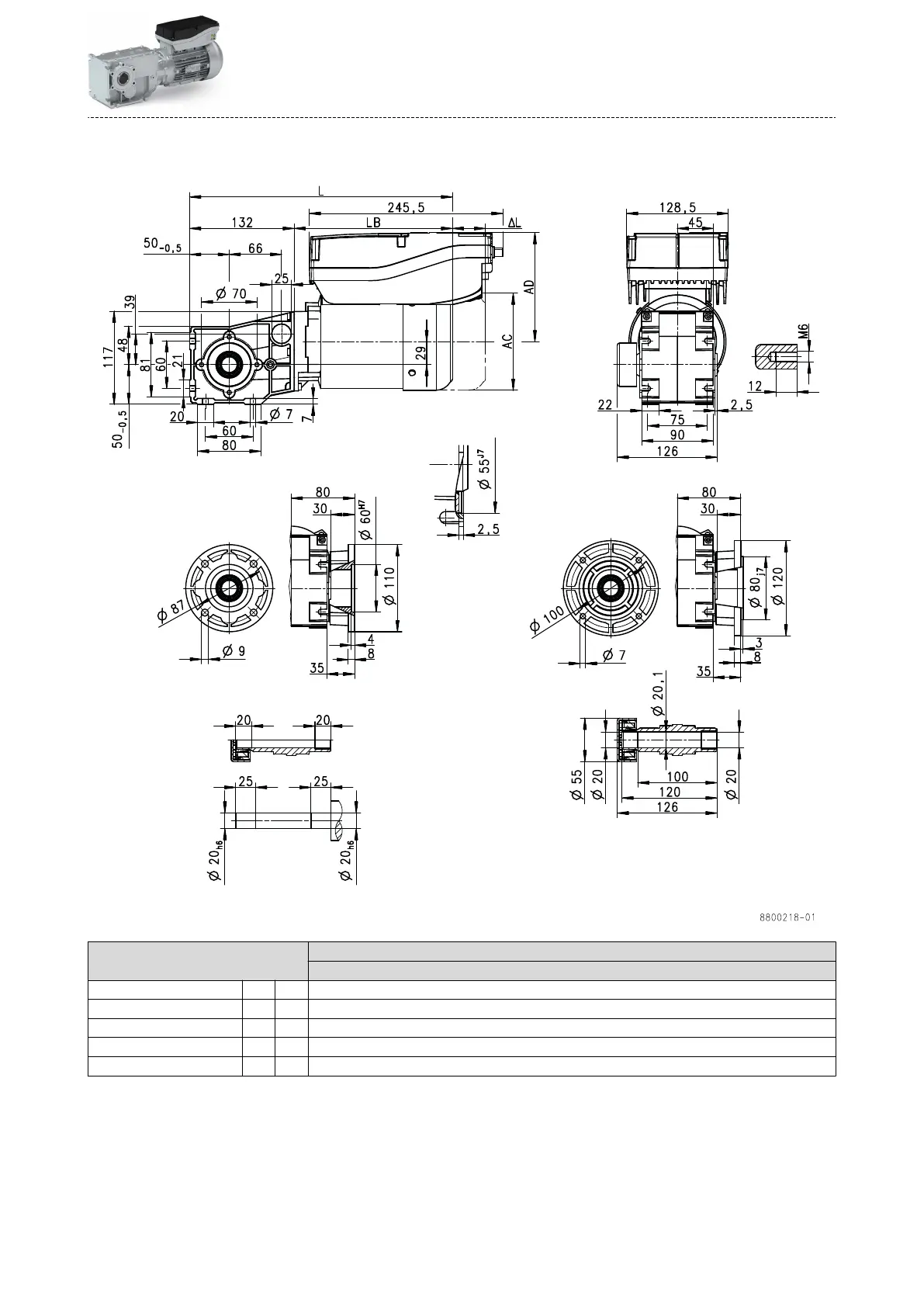 Motor length LB mm 200