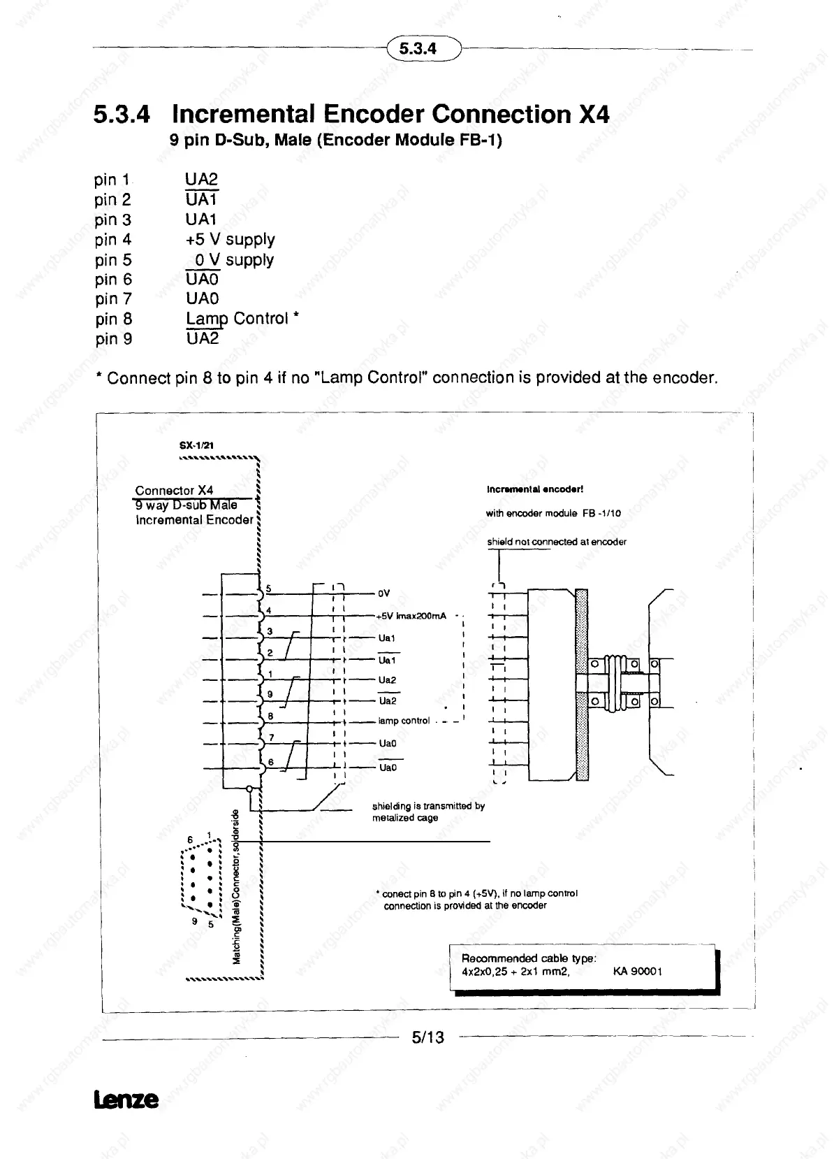 Lenze SX-1 - 5.3.4 Encoder Connections X4; Incremental Encoder Connection X4