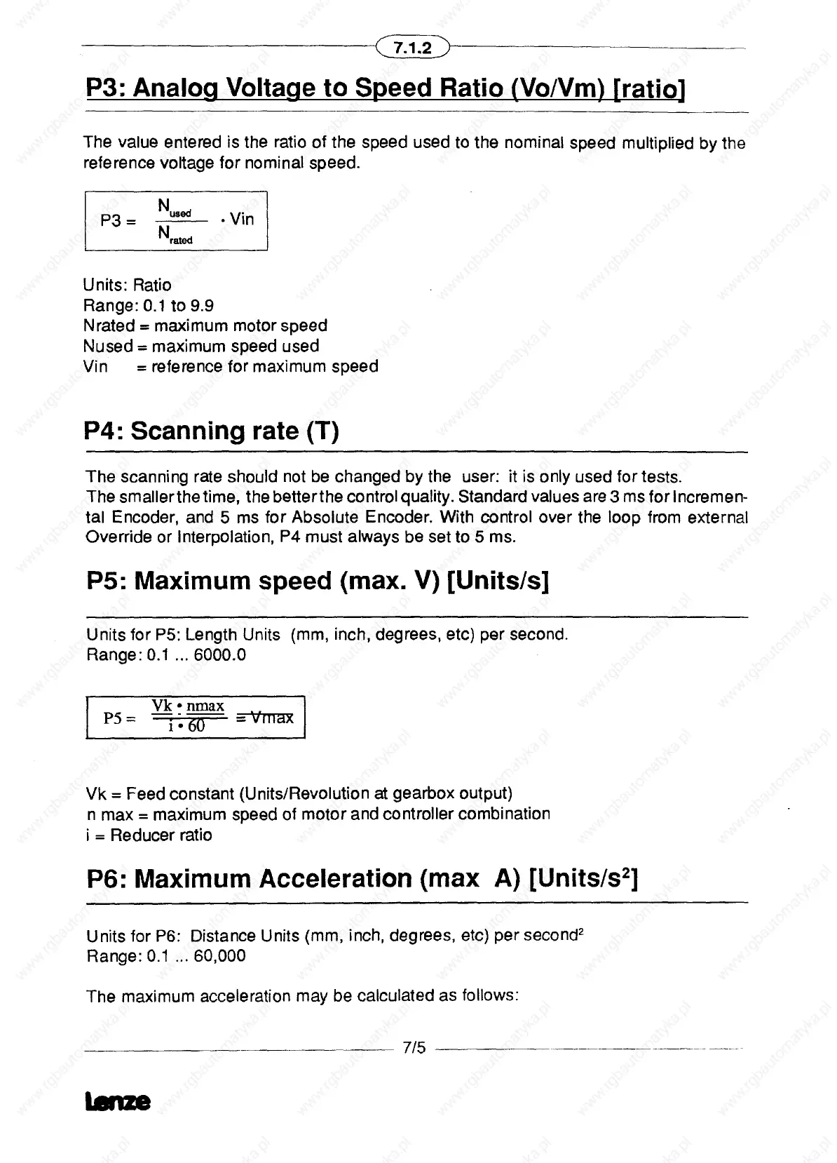 Lenze SX-1 - P3-P6 Speed and Acceleration Parameters; P3-P6 Parameters