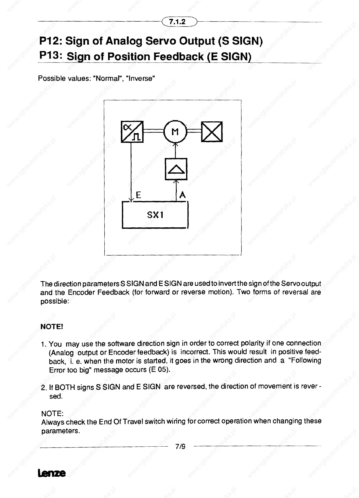 Lenze SX-1 - P12-P13 Sign Parameters