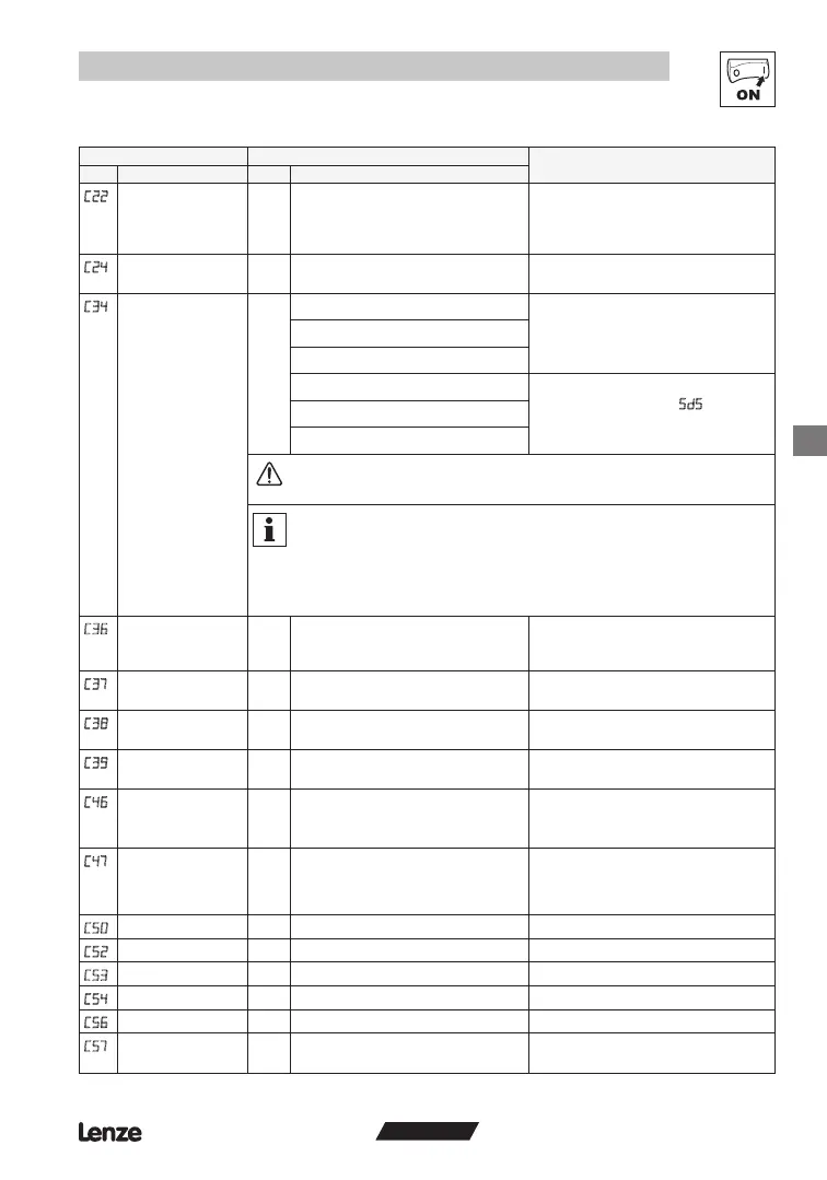 30,0 0,0 {Hz} 240 Ajuste de Lenze: activo en E2 = ALTO