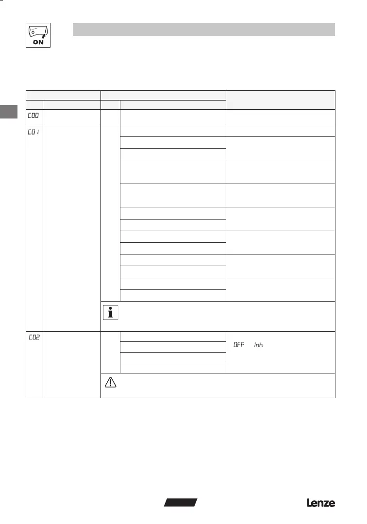 Load Lenze setting 0 No action/loading complete • C02 = 1, 2, 3 only possible with