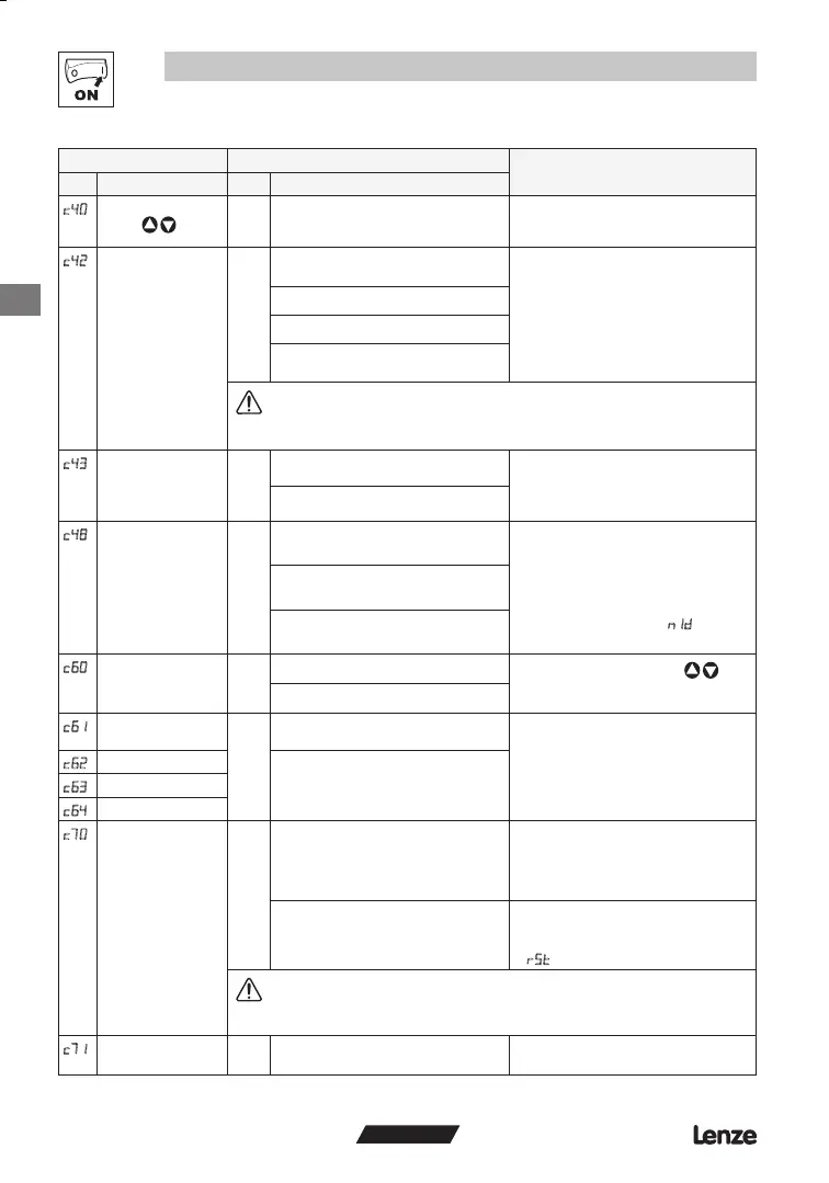 0 0 Suchbereich: C11 ... 0 Hz Falls c42 = 2 oder 3, startet der Regler die