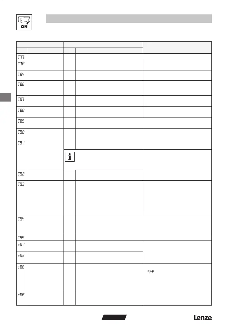 (1) La modification de ces réglages peut nuire aux performances. Contactez l’assistance technique de Lenze avant toute modification.