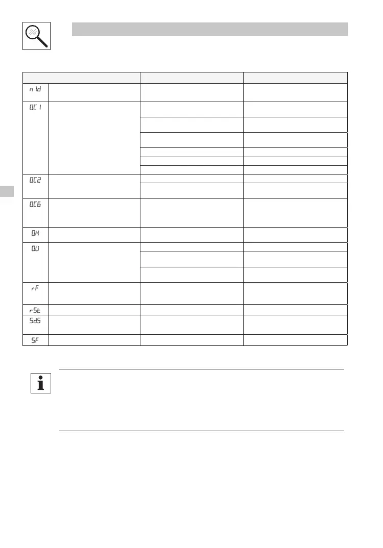 (1) Der Antrieb kann nur dann wieder gestartet werden, wenn die Fehlermeldung zurückgesetzt wurde (siehe c70).