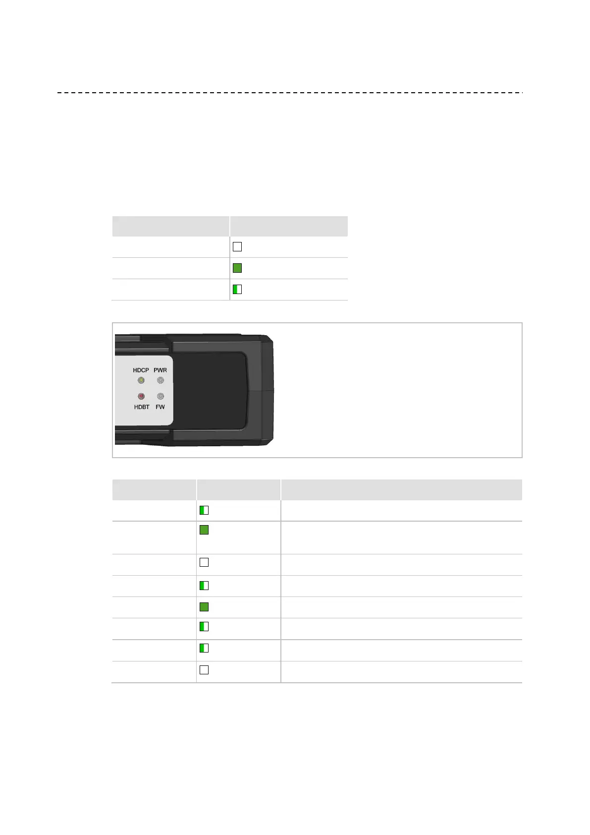 Das Sender Modul verfügt über Status Anzeigen. Die folgende Tabelle listet die verschiedenen