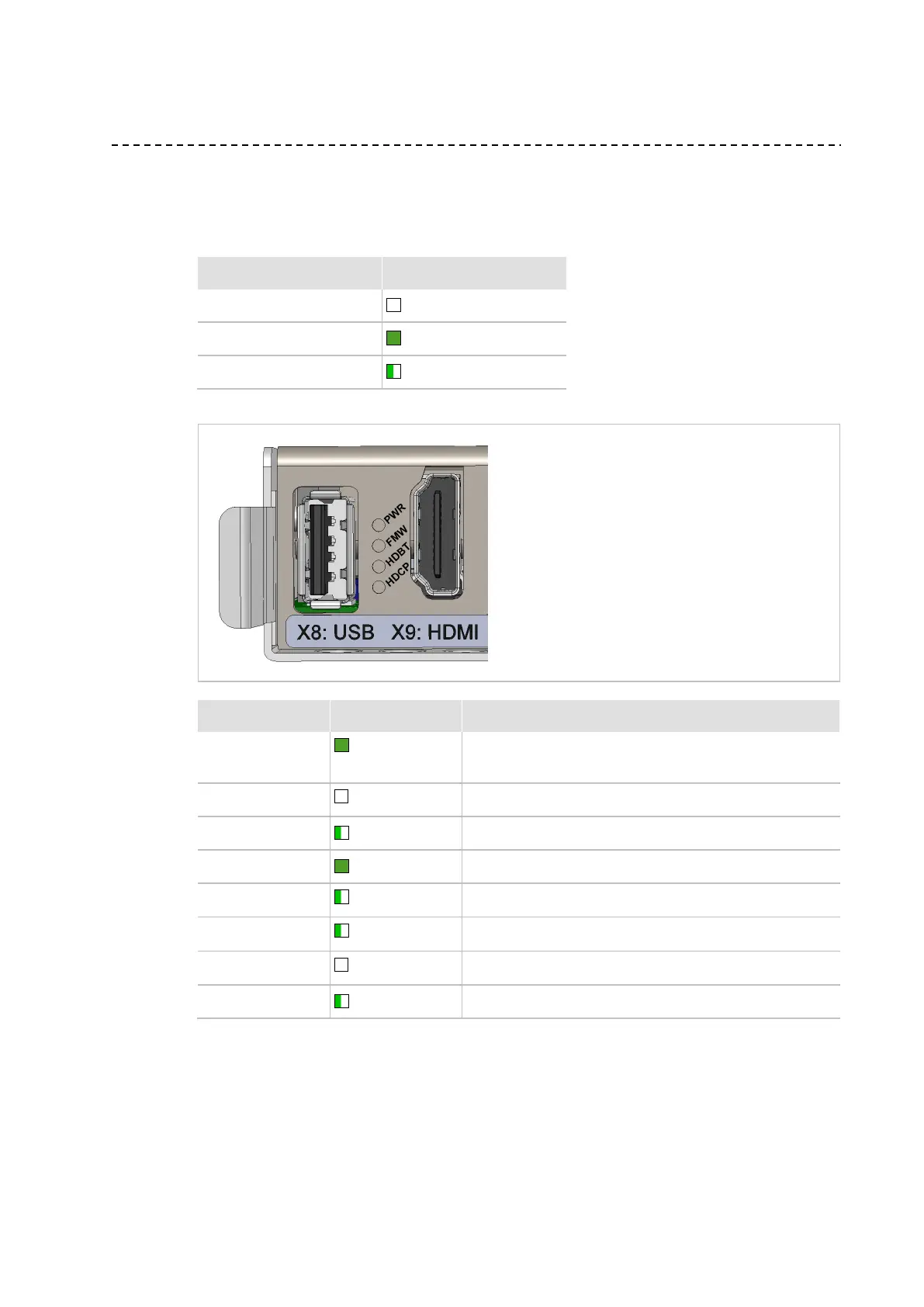 Das Sender Modul verfügt über Status Anzeigen. Die folgende Tabelle listet die verschiedenen