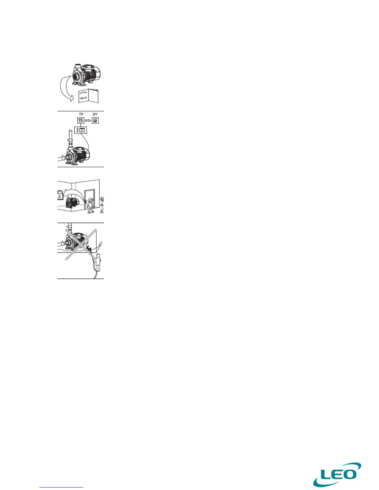Do not touch the electric pump while working; do not wash, swim