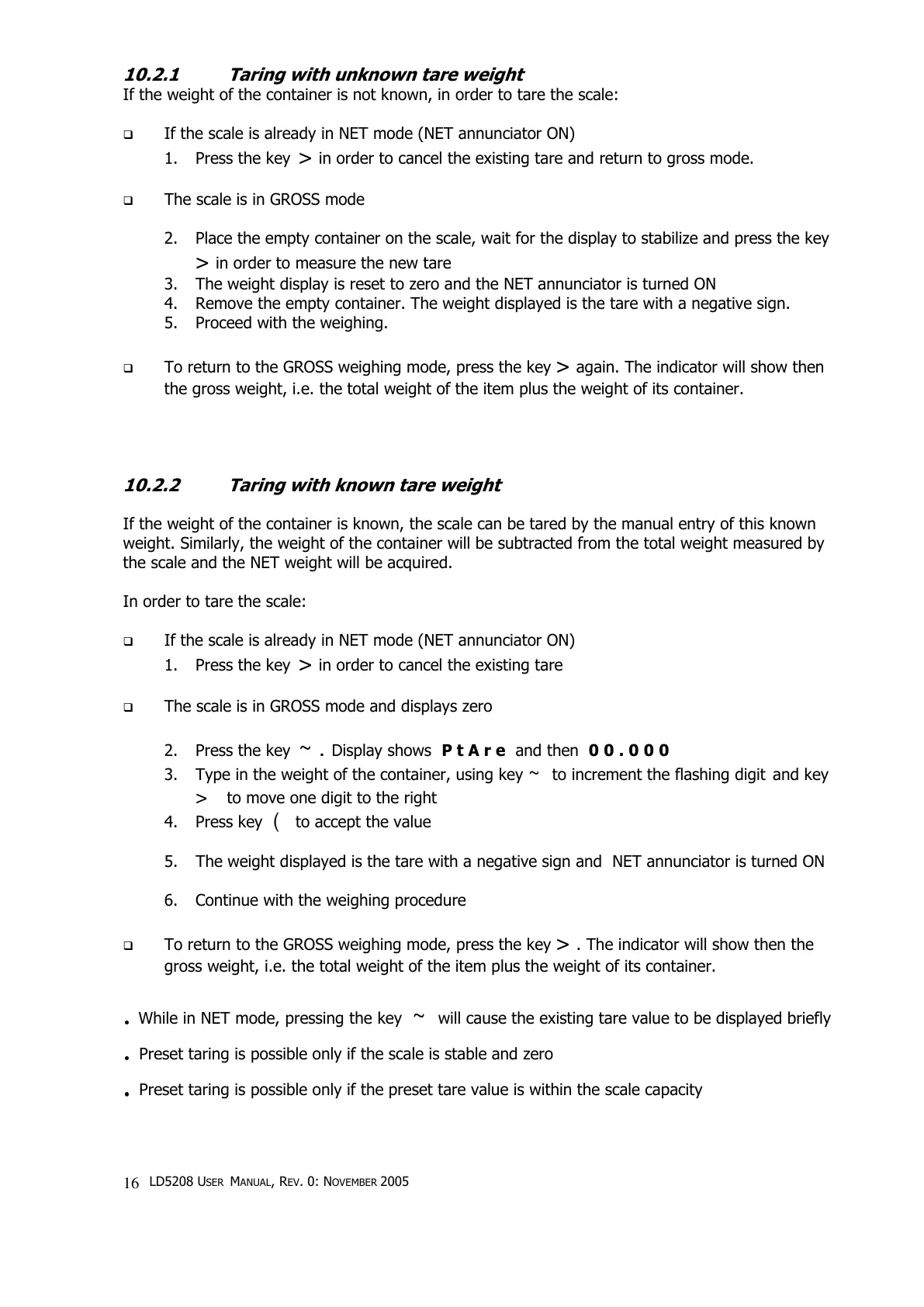 . Preset taring is possible only if the preset tare value is within the scale capacity