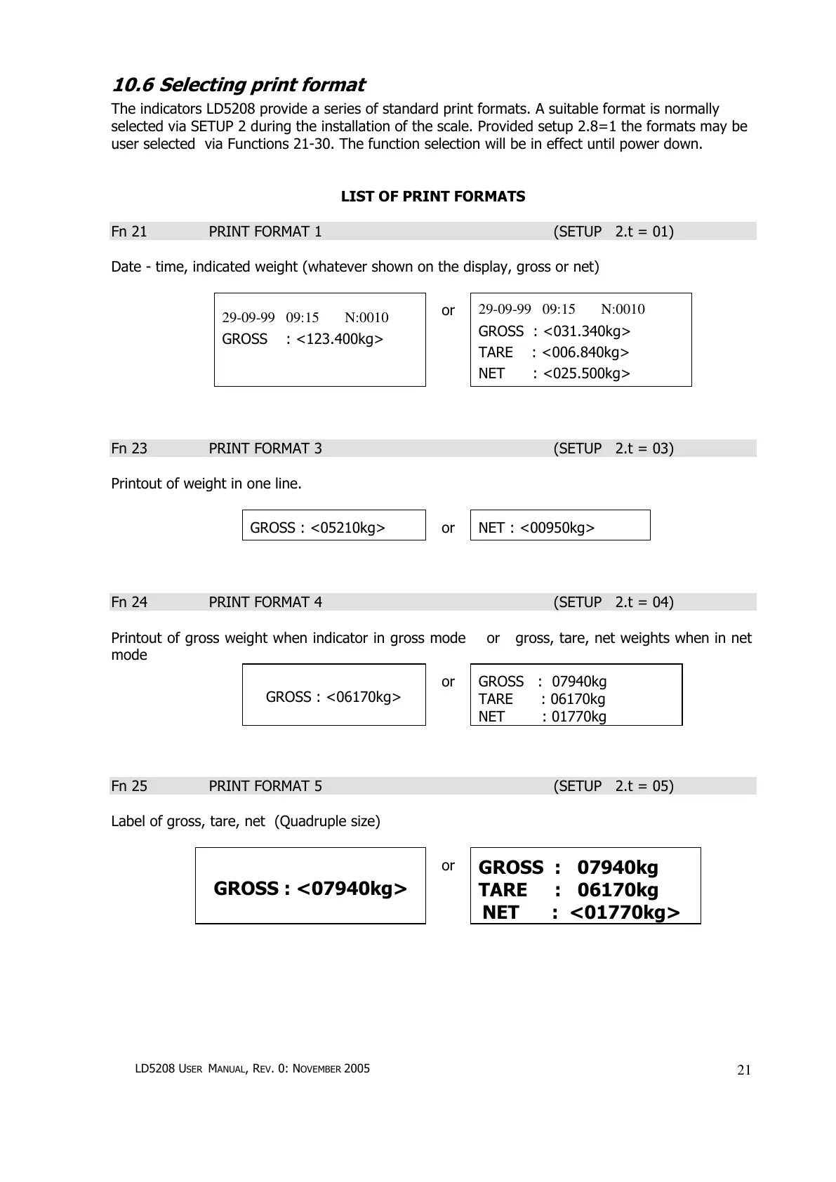 selected via SETUP 2 during the installation of the scale. Provided setup 2.8=1 the formats may be