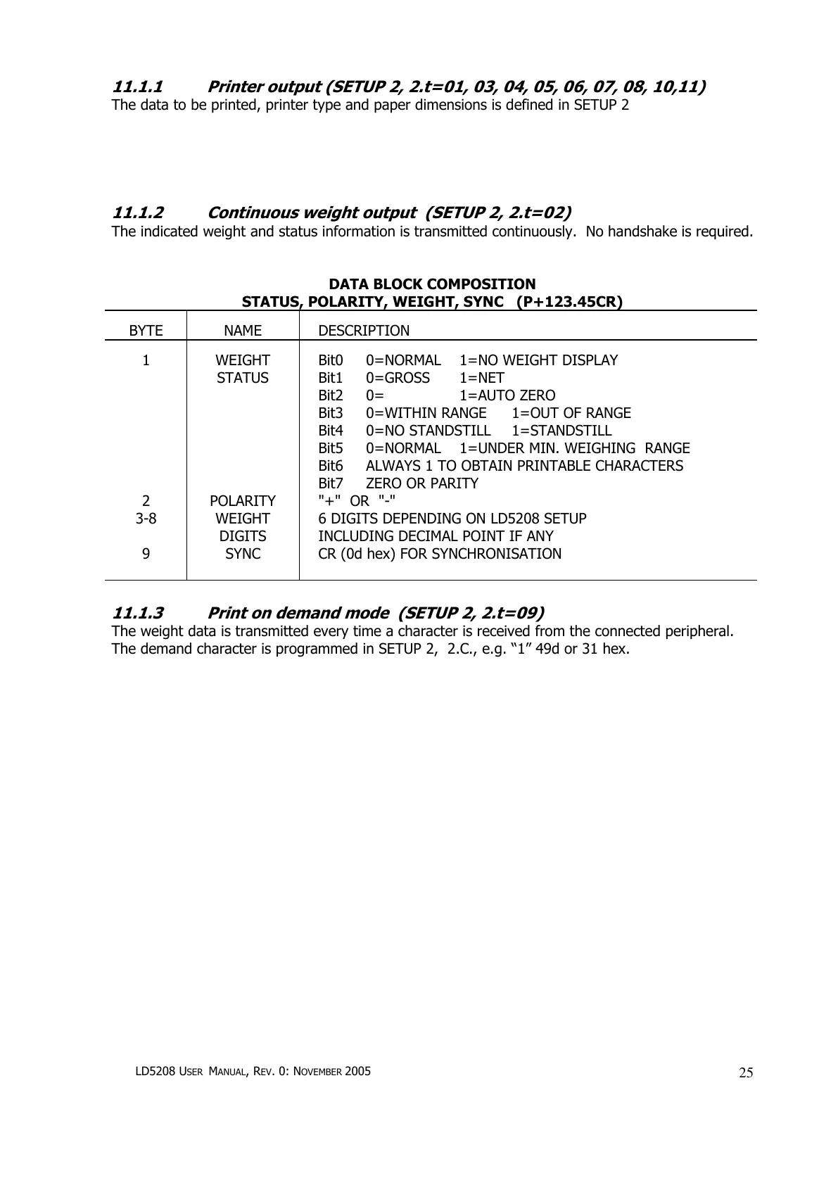 11.1.2 Continuous weight output (SETUP 2, 2.t=02)