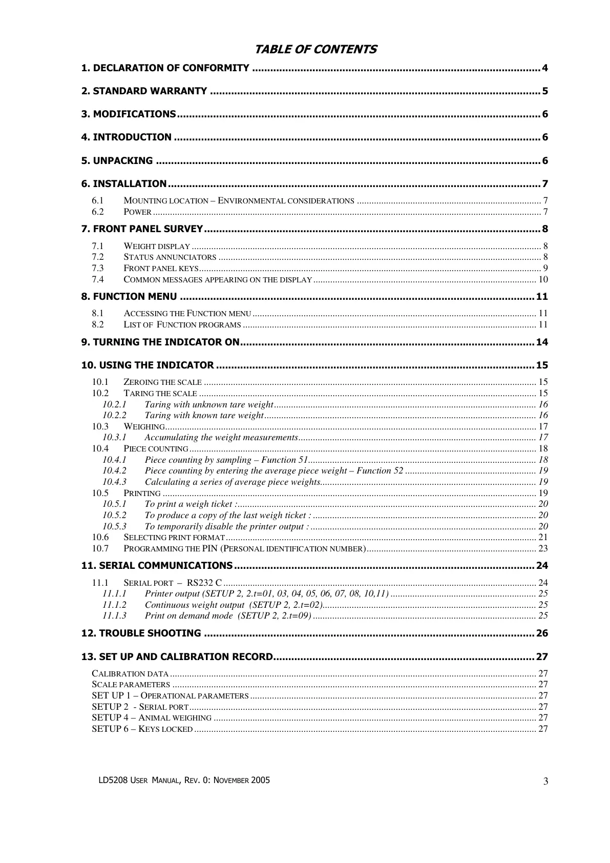 7.1 WEIGHT DISPLAY ................................................................................................................................................ 8