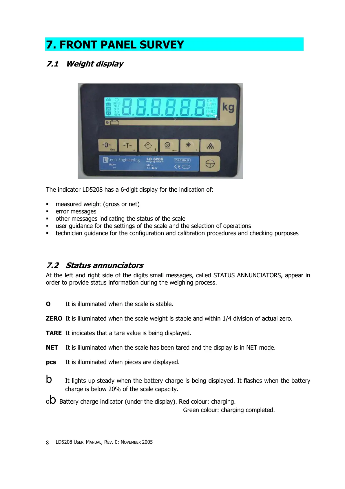 7.1 Weight display