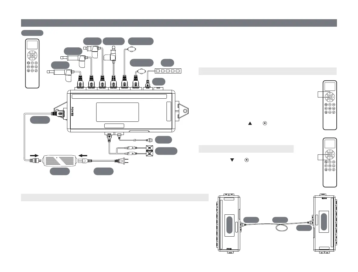 STEP 2:Connect the male ends of the sync cord to the female sync plugs of the control boxes