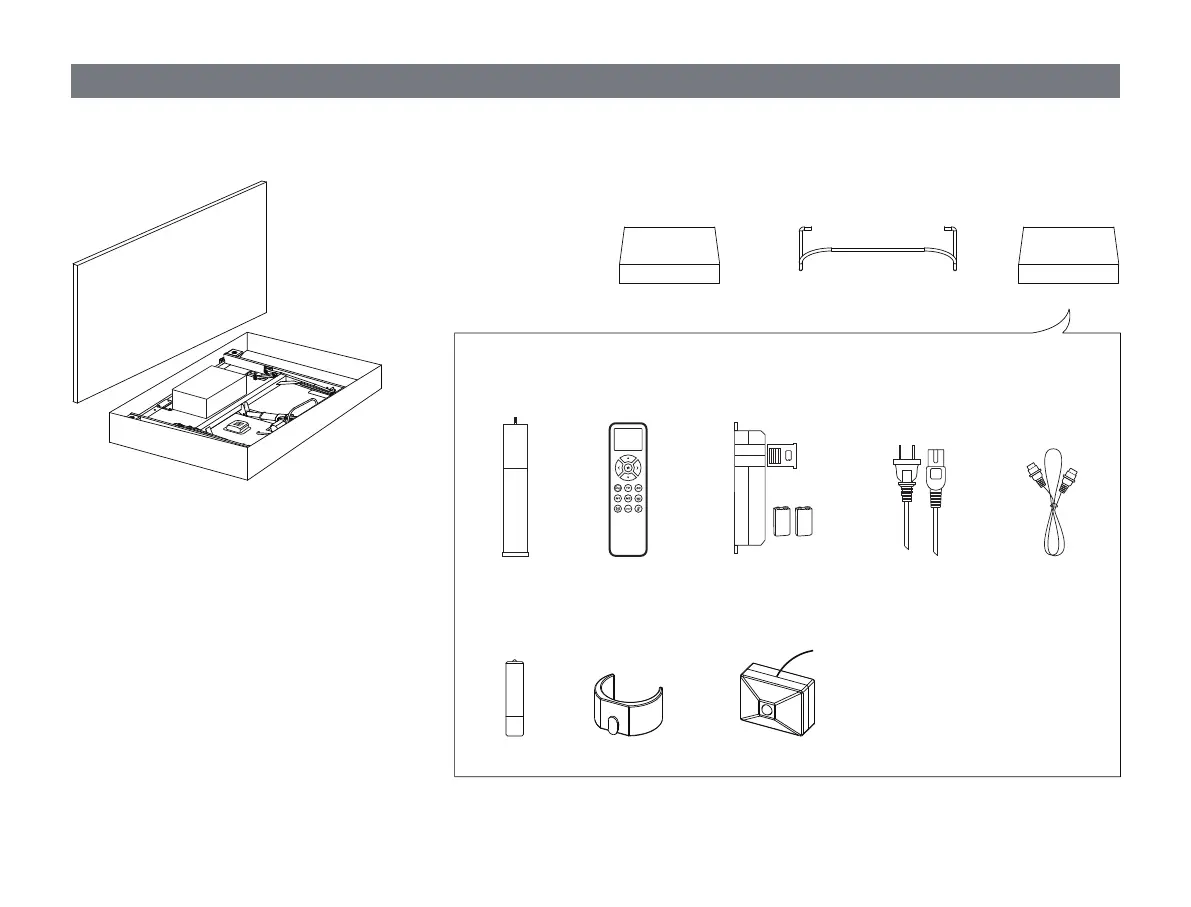 Sortez tous les accessoires de l’emballage et mettez-les de côté. L’ensemble des composantes et