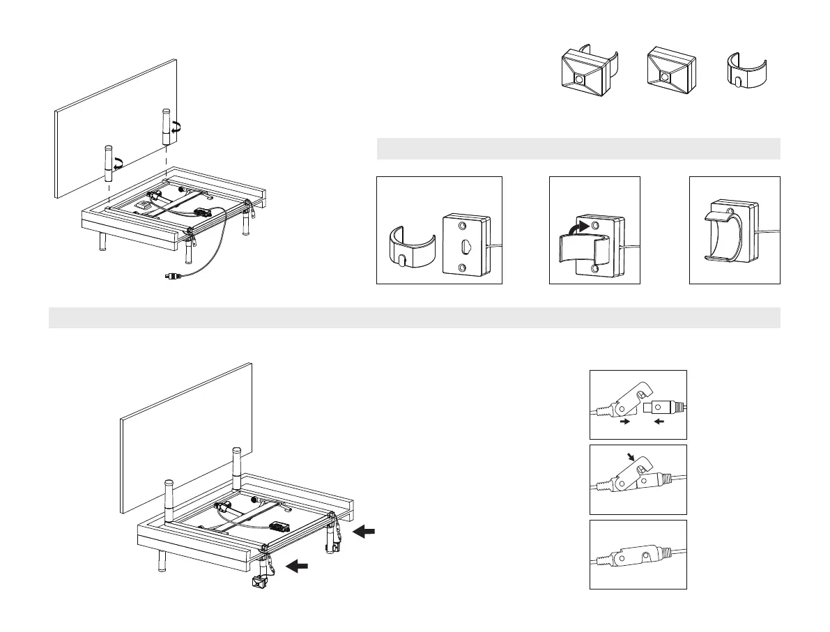STEP 1: Clip the mounting bracket onto the center adjustable legs as illustrated.
