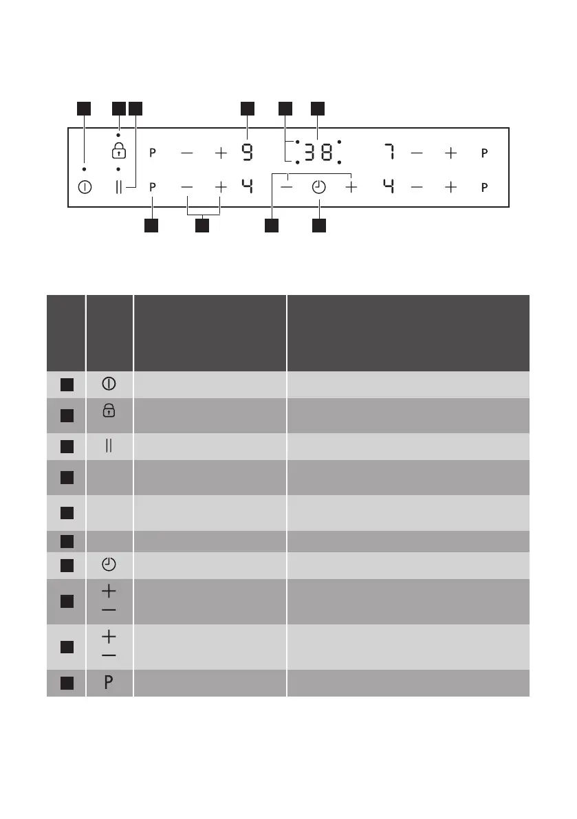 MARCHE/ARRÊT Pour allumer et éteindre la table de cuisson.