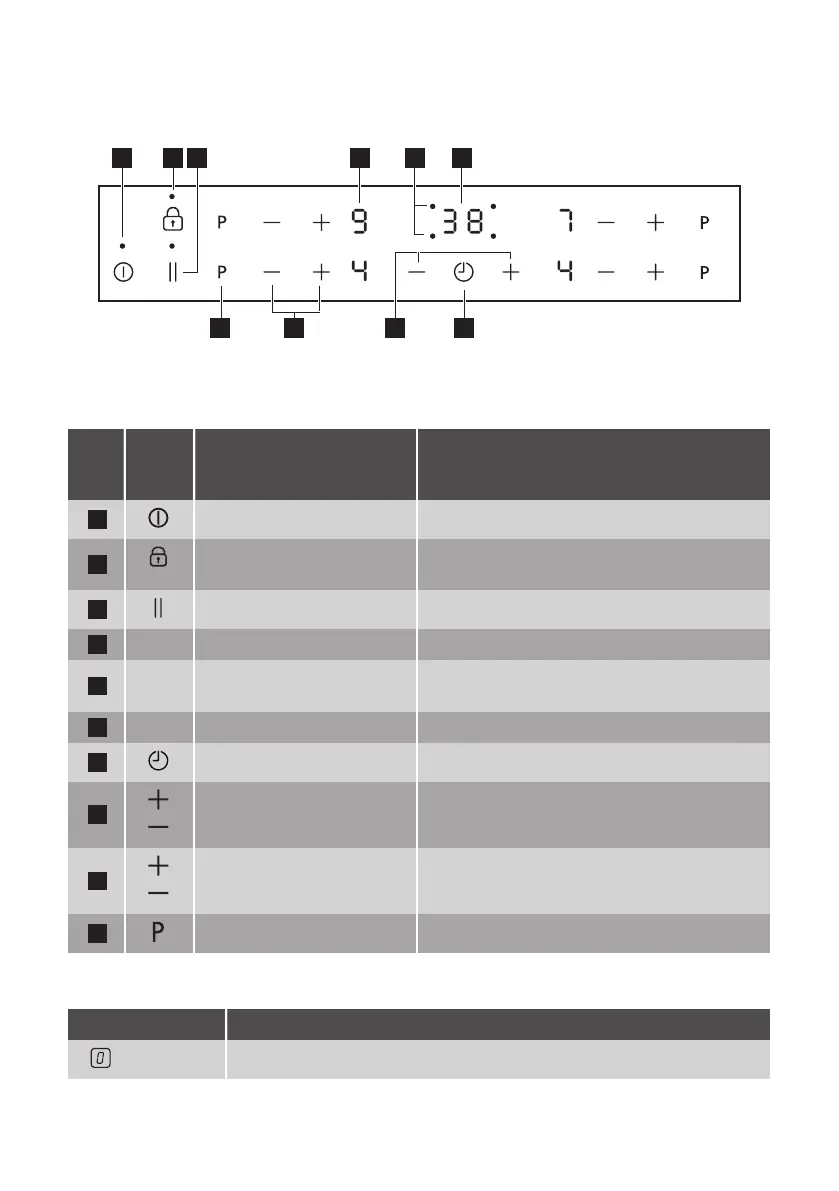 - Kochstufenanzeige Zeigt die Kochstufe an.