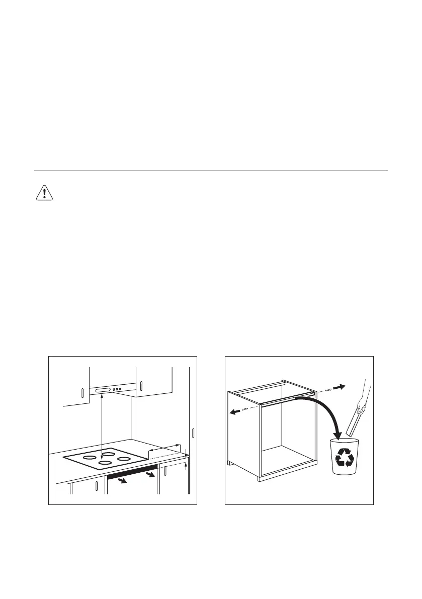 dem Boden des Kochfelds angebracht.