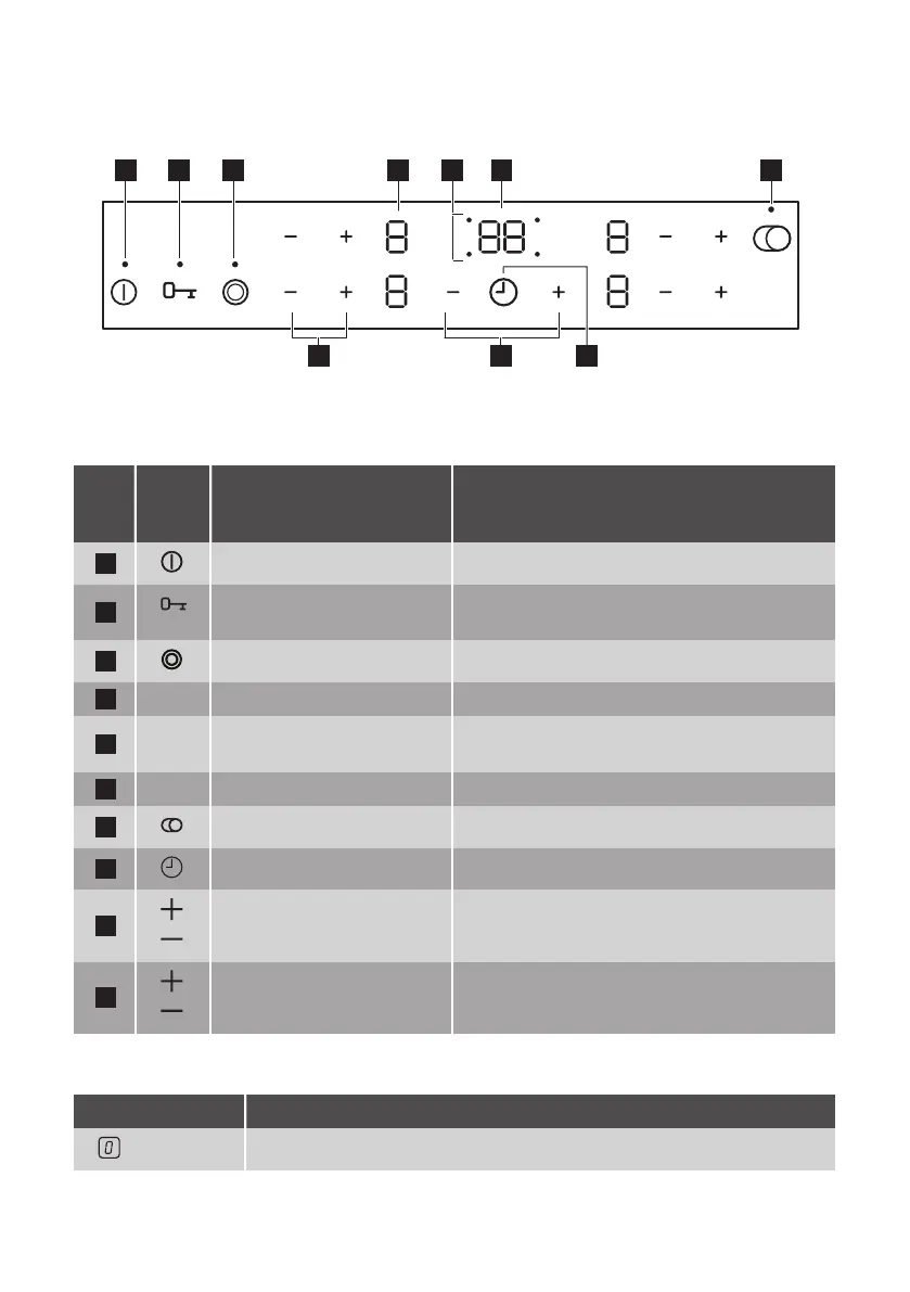 ON / OFF To activate and deactivate the hob.
