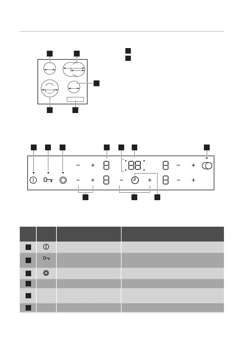 AAN/UIT De kookplaat in- en uitschakelen.