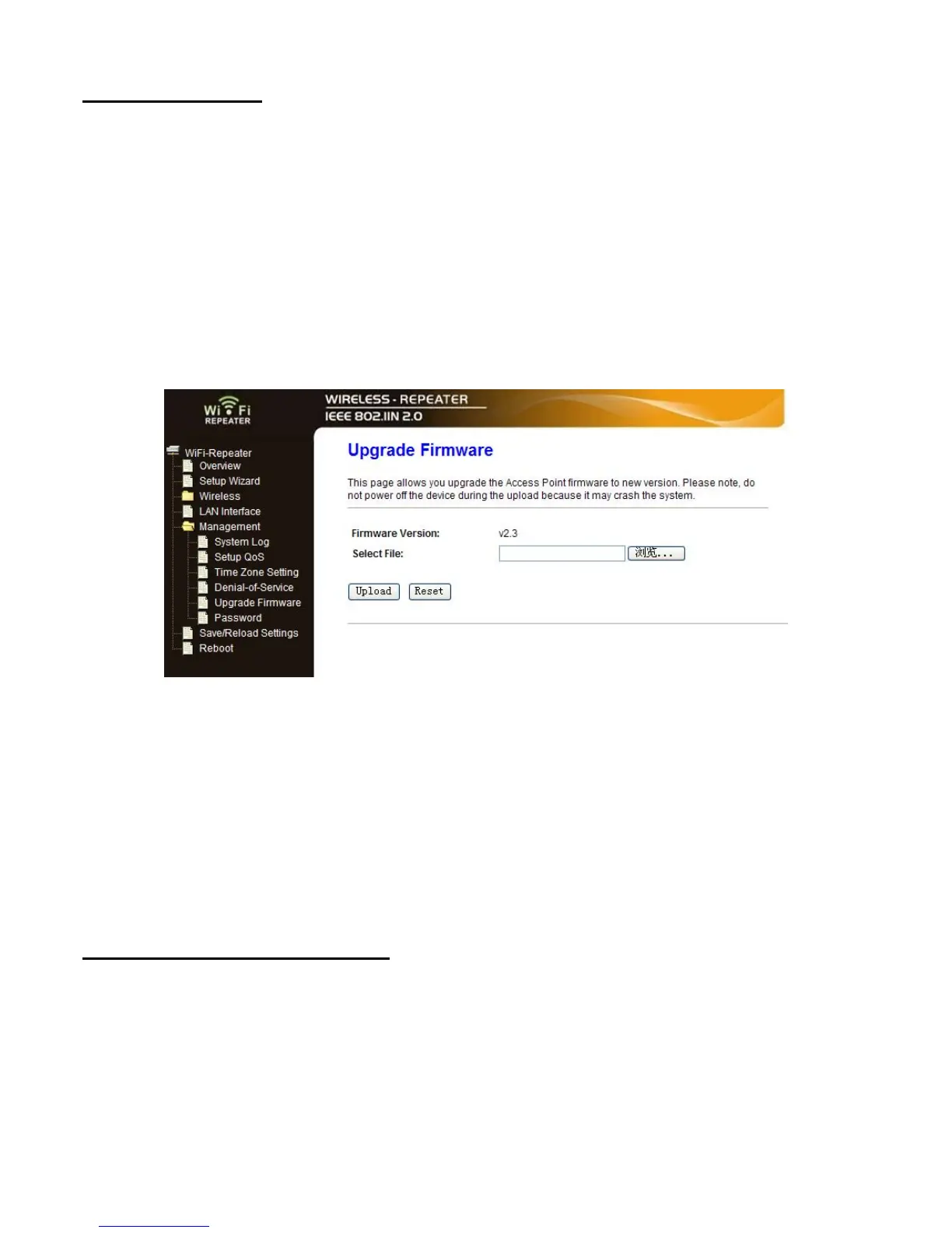 Please click ‘Management-> Upgrade Firmware’ located at the web management